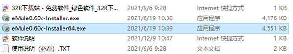 1、在本站下載“EMULE電驢老板本無限制中文版”并解壓到任意文件夾,得到64/32兩個安裝程序,根據(jù)情況選擇;