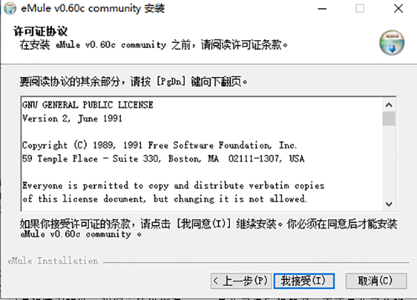 3、歡迎使用“eMule0.60c community”安裝程序,點(diǎn)擊下一步;