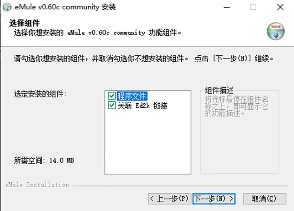 5、選擇要安裝的組件,需要14mb空間,默認(rèn)即可點(diǎn)擊下一步;