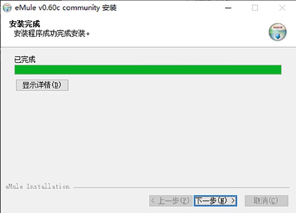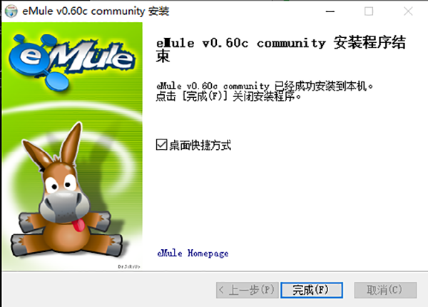 10、“eMule0.60c community”安裝程序結(jié)束,點(diǎn)擊完成,可以開始使用了。