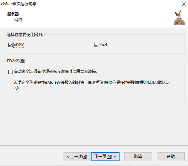 7、選擇使用的網(wǎng)絡(luò),默認(rèn)勾選;ED2K設(shè)置,可以選擇勾選,點(diǎn)擊下一頁;