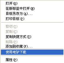 方法五:用右鍵單擊鏈接,選擇“使用電驢下載”來調(diào)用電驢進(jìn)行下載。如圖所示。
