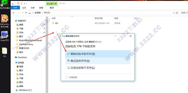 2、然后將從本站下載的7代i5i7通用版EFI引導文件復制到U盤EFI分區(qū)的根目錄下,按提示點擊“復制和替換”