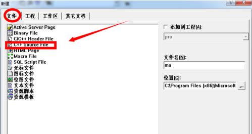 7、點(diǎn)擊“文件”中的“新建”,在彈出的對(duì)話框中選擇“文件”選項(xiàng)卡下面的“c++ source file”,在右邊的“文件名”中輸入你想輸入的文件名