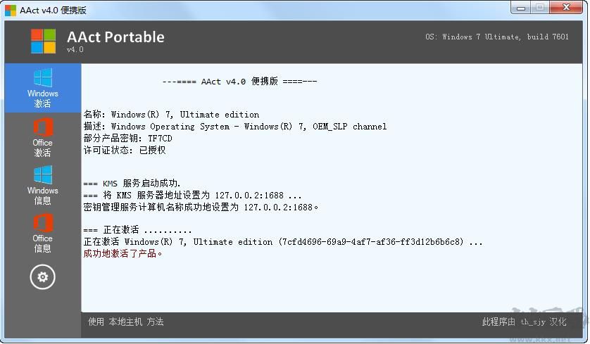 AAct是一款非常好用的KMS激活工具,主要用于激活Windows10系統(tǒng)和Office軟件,他采用KMS激活方式,激活成功率非常高,本站提供的是AAct Portable便攜版,無需安裝即可使用,已經(jīng)更新到最新版本,支持激活的系統(tǒng)更多,界面為中文。