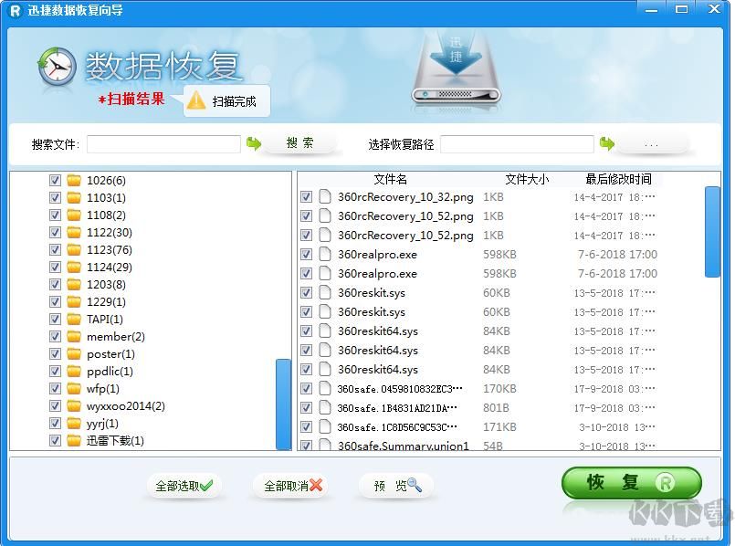 迅捷數(shù)據(jù)恢復(fù)軟件是一款很不錯的數(shù)據(jù)恢復(fù)軟件,我們可以用它找回你丟失的文件和數(shù)據(jù),不管是誤刪除,清空回收站、格式化了還是系統(tǒng)崩潰導(dǎo)致的數(shù)據(jù)丟失,恢復(fù)效果好!成功率高,本站提供的是迅捷數(shù)據(jù)恢復(fù)軟件,已經(jīng)注冊,打開就可以使用!支持硬盤數(shù)據(jù)恢復(fù)、手機、SD卡、各種儲存卡和移動儲存設(shè)備恢復(fù)。