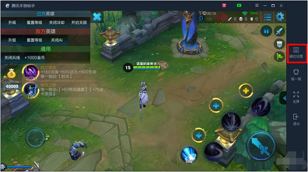 1、打開(kāi)騰訊手游助手,進(jìn)入王者榮耀游戲界面,用于對(duì)應(yīng)技能位置進(jìn)行按鍵位置調(diào)整,點(diǎn)擊界面右邊的“鍵位設(shè)置”進(jìn)入設(shè)置