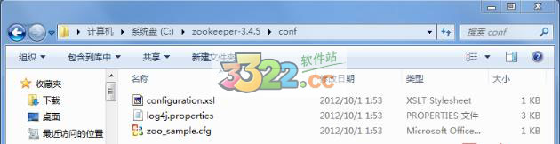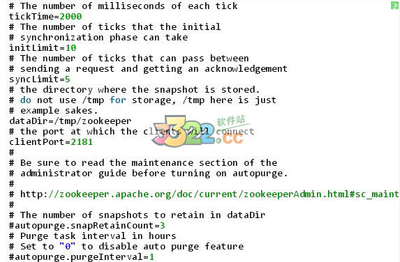 4、在conf文件夾中新建名為“zoo.cfg”的文件(ZooKeeper在啟動時會找名為“zoo.cfg”的文件并將其作為默認配置文件),并用記事本打開,將原來名為“zoo_sample.cfg”的文件中的內容拷貝到新建的“zoo.cfg”文件中并進行必要的修改,如: