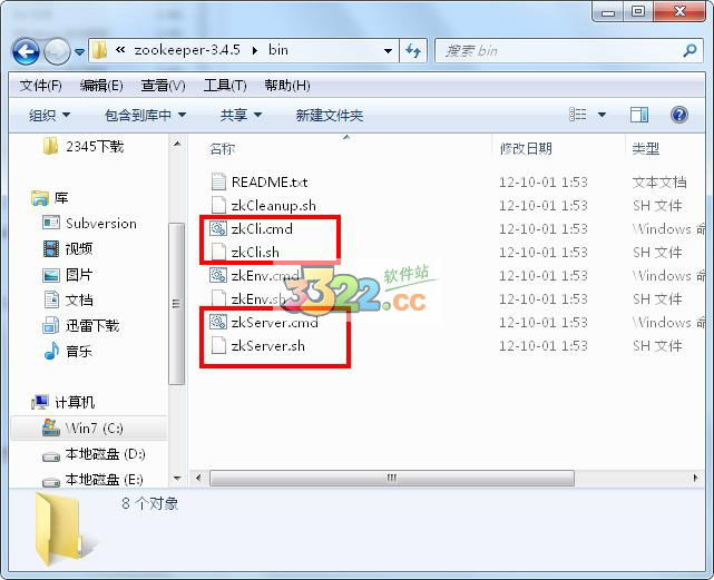 1、打開bin文件夾,找到其中的的“zkServer.cmd”和“zkCli.cmd”,然后運行,下面的.sh文件是給Linux系統的用戶準備的。這里需要注意,先啟動“zkServer.cmd”服務端,再啟動“zkCli.cmd”客戶端就OK了