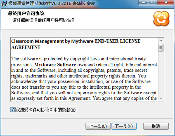 2、然后閱讀軟件安裝協(xié)議,并勾選我接受許可協(xié)議中的條款