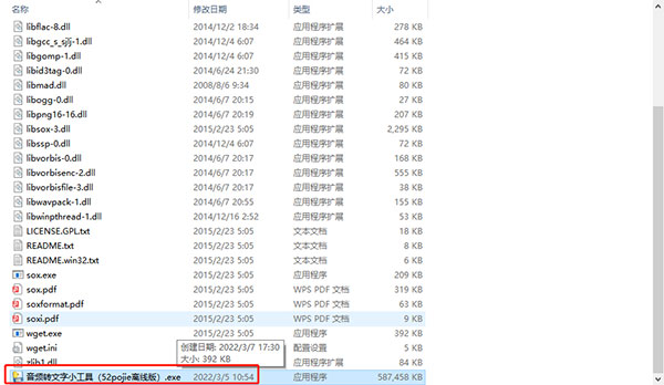 1、下載軟件壓縮包文件,先解壓到本地,直接找到“音頻轉(zhuǎn)文字小工具(52pojie離線版).exe”運(yùn)行程序即可