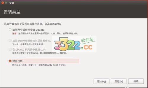 然后用戶看到系統(tǒng)的安裝向?qū)?,各個選項都十分的清楚,第一個就是給那些只是想要體驗Ubuntu的用戶提供的,想要整個安裝就選擇安裝烏班圖。