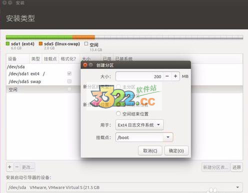 我的只用了20G來安裝所以只分了主要的基礎(chǔ)分區(qū)。