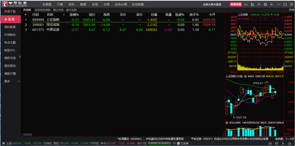 7、進(jìn)入軟件后,即可完美使用中原證券集成版的全部功能;