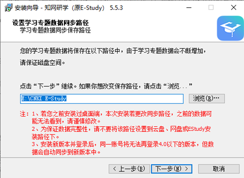 6、設(shè)置學(xué)習(xí)專題數(shù)據(jù)同步路徑,要保證內(nèi)存足夠,其它的看紅色提示,點擊下一步;"
