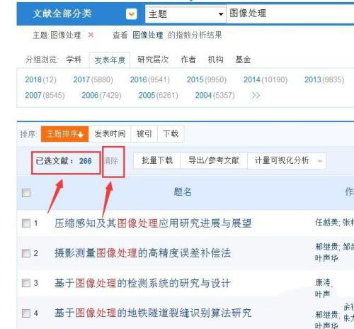 1、首先打開中國知網(wǎng),并檢索到所需文獻。如下圖所示,之前已選中200多個文件,這里要單擊“清除”按鈕清除,需要注意的是即使重啟瀏覽器知網(wǎng)也會記住之前選擇的文獻,在批量下載之前如果不需下載那些文獻,一定要單擊清除。