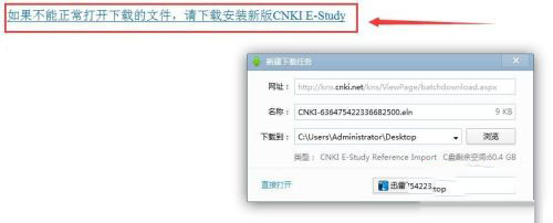 4、會把選中文獻題錄導(dǎo)出成文件,直接彈出下載對話框,選擇位置,單擊“下載”即可。如果沒有E-Study軟件下載完題錄文件后,單擊圖示箭頭處鏈接下載即可。