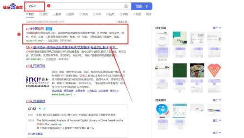 1、首先在百度首頁搜索“CNKI”,打開搜索結(jié)果的第一條,如下圖所示。