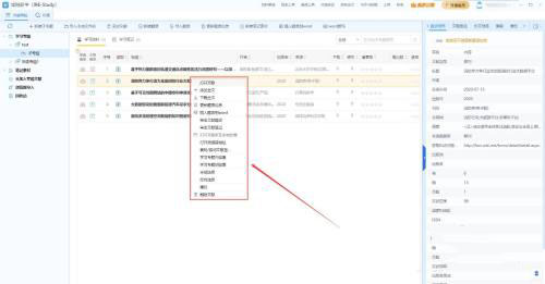 7、然后我們在知網(wǎng)研學(xué)中可以看到五條文獻已經(jīng)出現(xiàn),可以通過右鍵點擊的方式選擇相關(guān)操作,既可以在線閱讀也可以本地閱讀,如下圖所示。