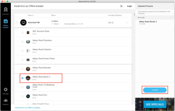 6、在列表中選擇您想要安裝的產(chǎn)品,點擊Install安裝。