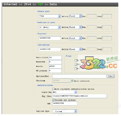 構(gòu)造報(bào)文應(yīng)用指導(dǎo)的形式,先后構(gòu)造每一層協(xié)議的頭部;構(gòu)造完一層協(xié)議的頭部后,從界面中選擇相應(yīng)的下一頭部種類,點(diǎn)擊下一步,就可以形成相對(duì)應(yīng)的協(xié)議,如以太網(wǎng)接口中挑選0x0800,則點(diǎn)一下下一步按鍵后,建立IP頭部構(gòu)造界面。