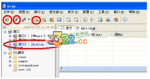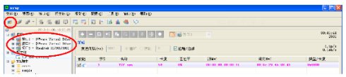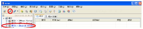 點(diǎn)擊工具欄中的“啟動(dòng)接口”按鈕,接口啟動(dòng)。點(diǎn)擊工具欄中的“開始抓包按鈕”,應(yīng)用程序進(jìn)入網(wǎng)絡(luò)監(jiān)聽狀態(tài)。