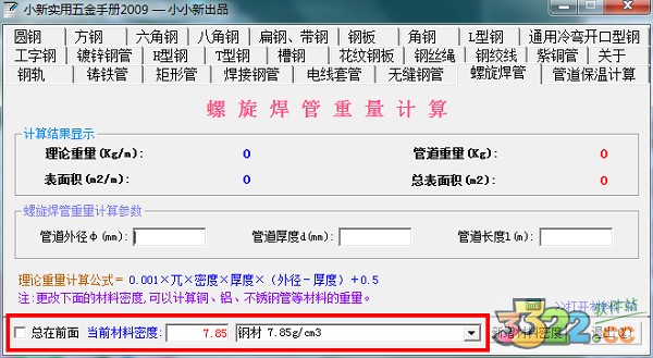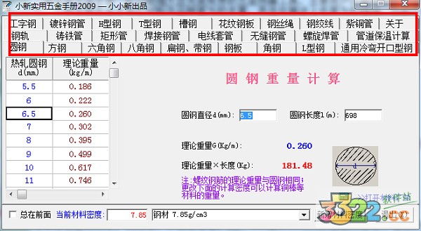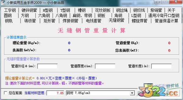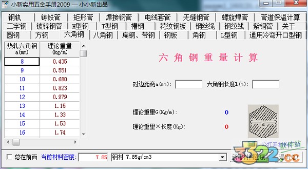 在某些五金材料中,例如鋼、不銹鋼等等,用戶可以更改其材料的密度然后進(jìn)行相應(yīng)的計(jì)算