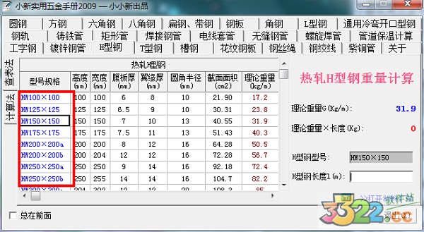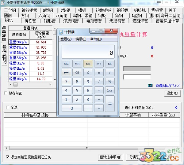 1、打開小新實(shí)用五金手冊,然后先點(diǎn)擊用戶需要進(jìn)行計(jì)算的材料