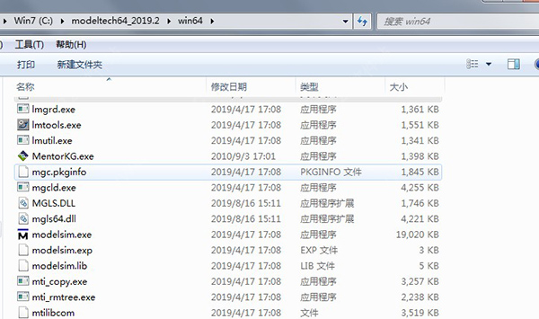4、軟件成功安裝后,先不運行軟件,打開patch破解文件夾,將MentorKG.exe、MGLS.DLL和patch_dll.bat復(fù)制到安裝目錄下的win64文件夾中;默認(rèn)路徑【C:\modeltech64_2019.2\win64】