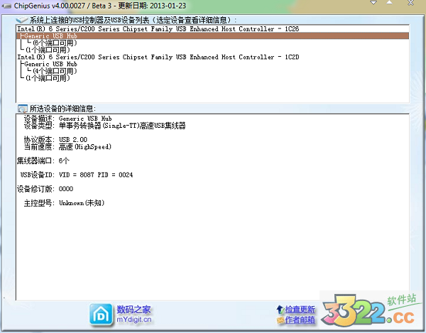 分成左右兩個部分,里面是USB設(shè)備列表框,以下是表明所選的設(shè)備詳盡信息。