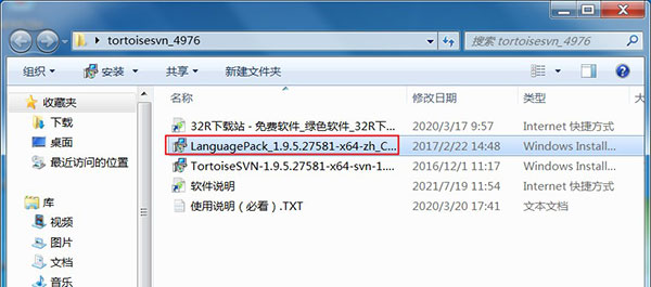 1、下載并解壓本站的壓縮包,雙擊“TortoiseSVN-1.9.5.27581-x64-svn-1.9.5.msi”開始安裝;