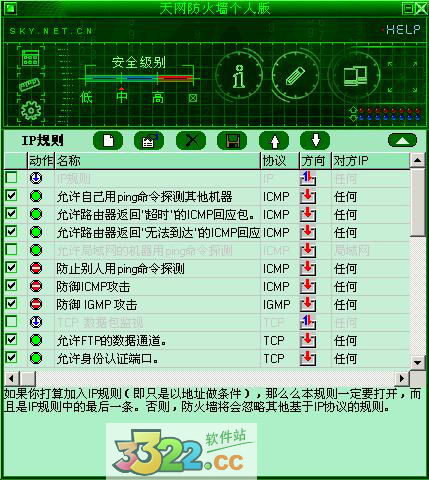 根據(jù)防火墻的規(guī)則設(shè)定控制面板,能夠容易地對(duì)防火墻規(guī)則開展提升、刪掉和調(diào)整,你可以根據(jù)自身需要制定相應(yīng)的規(guī)則,假如自己不能制訂規(guī)則,只需要將防火墻安全級(jí)別調(diào)整至“拓展”等級(jí)就可以,官方網(wǎng)會(huì)依據(jù)網(wǎng)絡(luò)信息安全自然環(huán)境不定期替你更新全新規(guī)則庫。