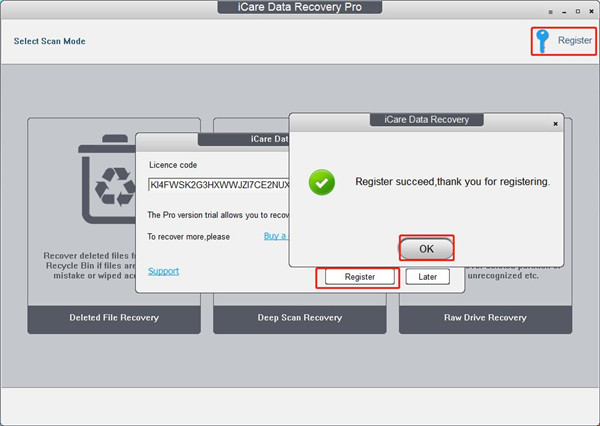 8、雙擊打開iCare Data Recovery Pro軟件,點擊Register,將注冊機中的注冊碼復制到軟件對應位置,點擊Register