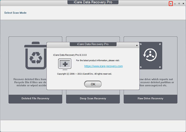 9、點擊紅色選框下的About,如下圖iCare Data Recovery Pro破解版破解完成,可以放心使用軟件