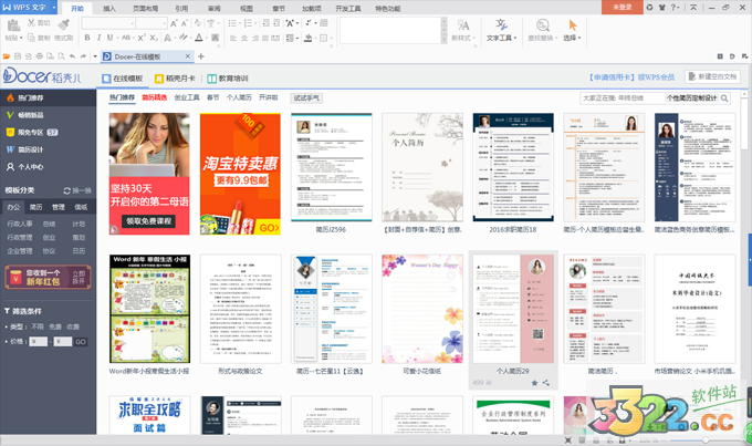 3.安裝完成后,下面是文檔、ppt、表格三個(gè)辦公軟件的界面。
