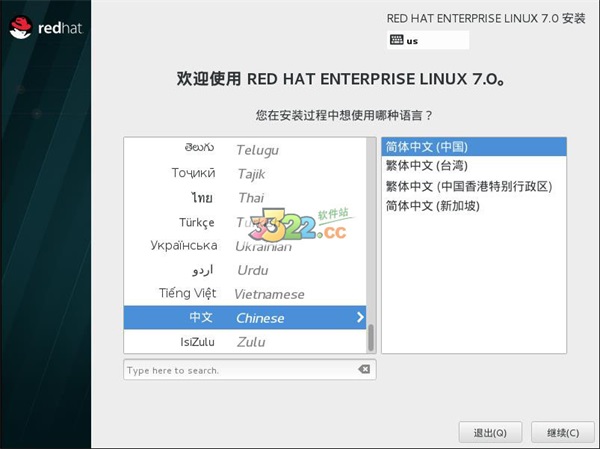 2、選擇安裝語言,畢竟是中國人,還是漢語比較好,不過如果是作為服務(wù)器的話,小編建議使用個(gè)英文版本。