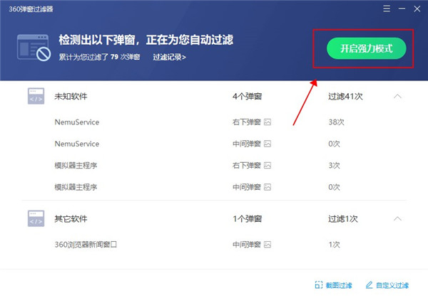 6、最后選擇下方的確認(rèn)過(guò)濾,這樣就完成對(duì)所選軟件的彈窗功能。
