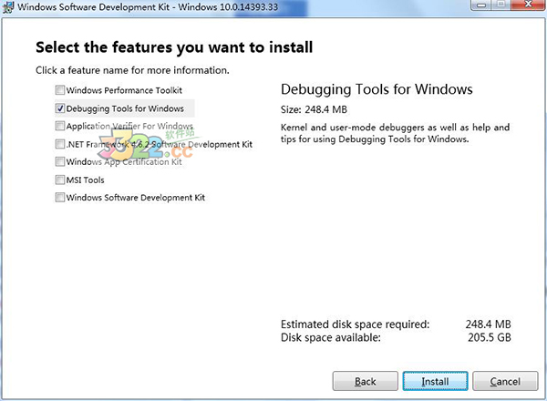 4、選擇安裝我們的windeg,也就是“Debugging Toools for Windows”,然后點(diǎn)擊install開始安裝。