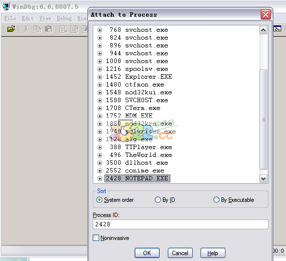 File->Attache to a Process->可以選擇一個(gè)運(yùn)行中的進(jìn)程,并對(duì)其進(jìn)行調(diào)試;