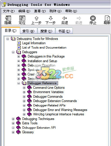 有關(guān)指令的幫助文檔,可以參考:Help->Contents->Debugging Tools for Windows->Debuggers->Debugger Reference,該目錄下列集了所有指令機(jī)器功能說明!