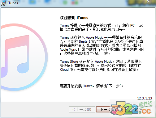 1、點(diǎn)擊下載好的iTunes安裝包,然后彈開的界面中選擇“下一步”(小編提醒:iTunes 12有兩種安裝包,一個(gè)是32位的,還有一個(gè)是64位的,所以在下載之前請確認(rèn)你的電腦系統(tǒng)是幾位的哦)