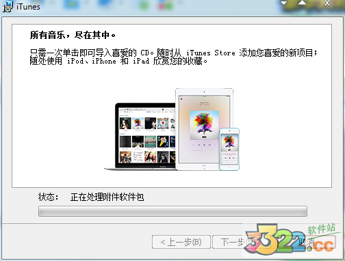 3、開始iTunes安裝,安裝的過程可能過慢,請耐心等待