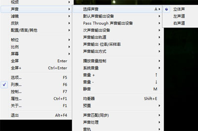 6、若有些視頻有多個音軌,你可以在右鍵【聲音】——【選擇聲音】菜單中選擇對應(yīng)的音軌;