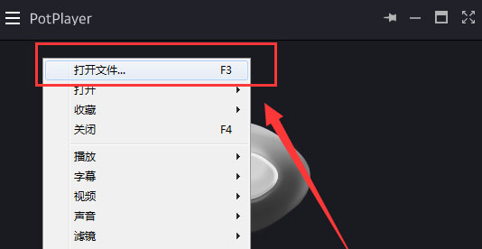 7、點(diǎn)擊鼠標(biāo)右鍵,在彈出選項(xiàng)里點(diǎn)擊“打開文件”并將想要旋轉(zhuǎn)畫面的視頻添加進(jìn)來;