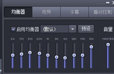 4、播放菜單旁邊,就是一個控制面板,這里有整個軟件的設(shè)置參數(shù),均衡器,視頻,字母,播放控制。均衡器這里有很多現(xiàn)成的模板,比如流行音樂,電影,新聞,當(dāng)然也可以自定設(shè)置成小波浪,記得要打勾啟用先,如kkx分享的截圖: