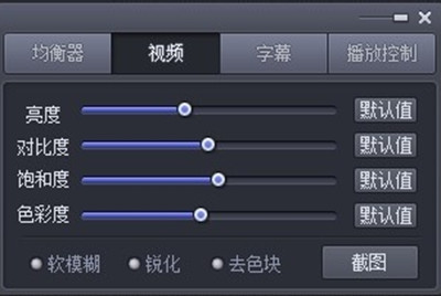5、視頻按鈕下面,包含有影片的亮度,對比度,飽和度,色彩度,還有銳化,模糊,截圖等控制,如kkx分享的截圖: