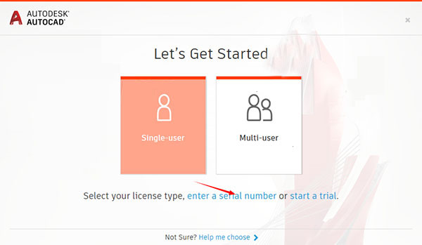 3、然后點(diǎn)擊enter a serial number輸入cad2020序列號(hào)和密鑰,由于破解過(guò)程中需要使用序列號(hào) 666-69696969, 667-98989898, 400-45454545 066-66666666 或任何相匹配的模板,而使用產(chǎn)品序列號(hào) (每個(gè)軟件序列號(hào)是不同的,具體在Product KEY.txt查找,如kkx分享的截圖: