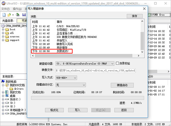 5、直到看到“刻入成功”,即完成系統(tǒng)盤制作,彈出優(yōu)盤即可。
