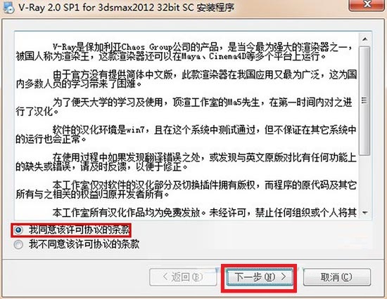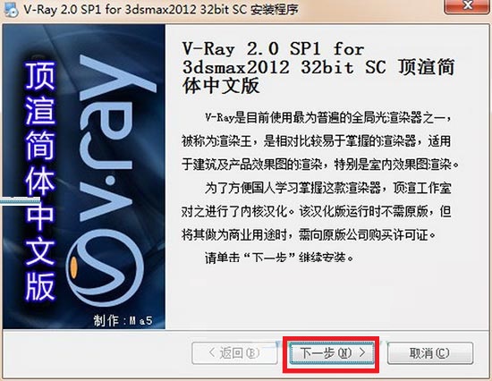 1、運(yùn)行vray2012渲染器32位安裝程序,64位版安裝方法類似
