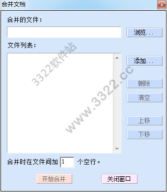 用于把磁盤上的多個文件合并為一個,先用“添加”按鈕把合并文件的文件名加入列表框,用“上移”、“下移”按鈕調(diào)整好合并次序,在“合并的文件”中加入合并后的文件名,還可以設置合并文件間的間隔,設置好后,單擊“開始合并”按鈕即可。